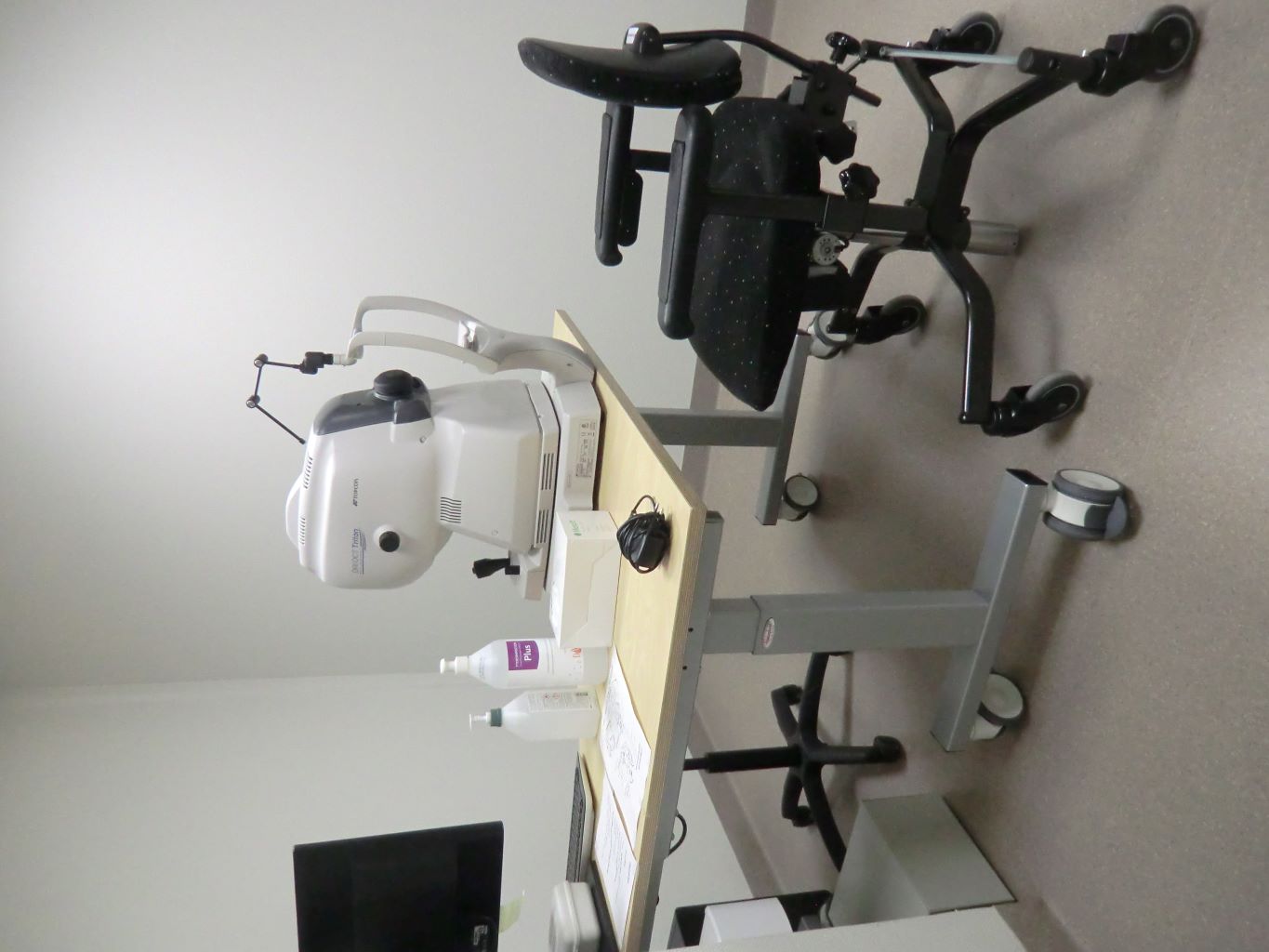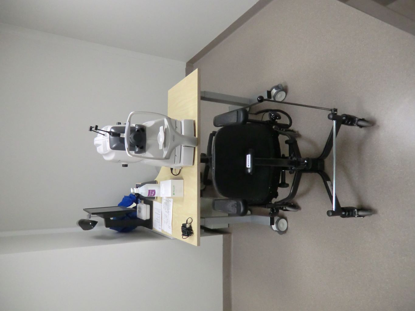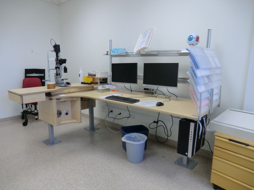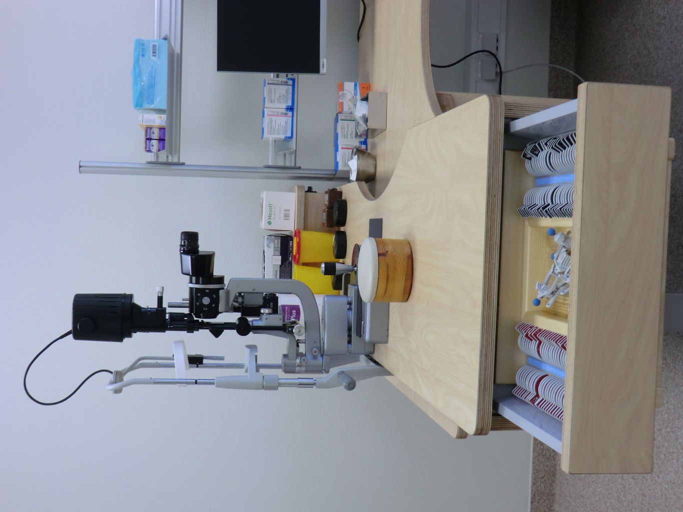 Undersökningsbord för ögon. Höj & sänkbart, med utskjutbar skiva för undersökningsinstrument. Bordet