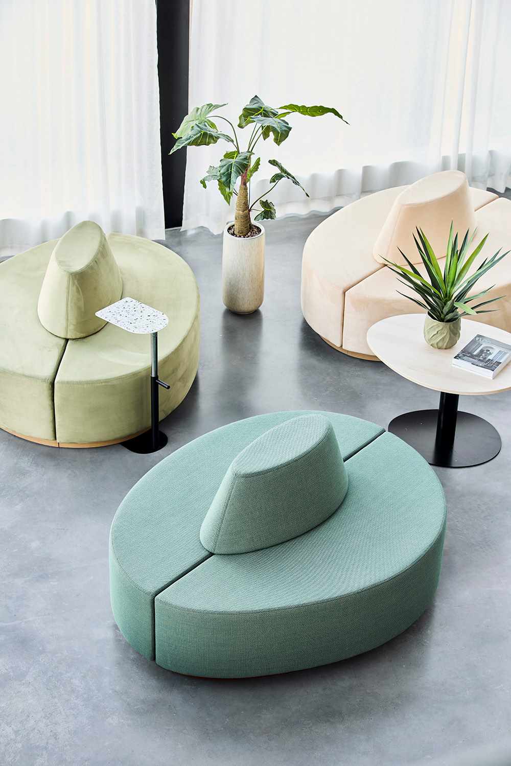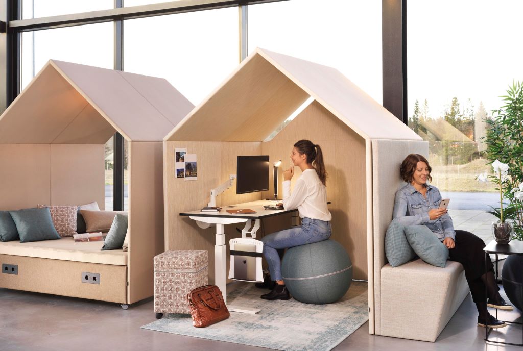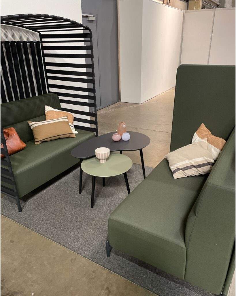 Sköna loungemöbler och sittmöbler för alla miljöer där kunden själv enkelt kan förändra och bygga nya kreativa rum. Soffor som bildar en lugn ljudabsorberande sittplats och en avgränsning i kontorslandskapet.