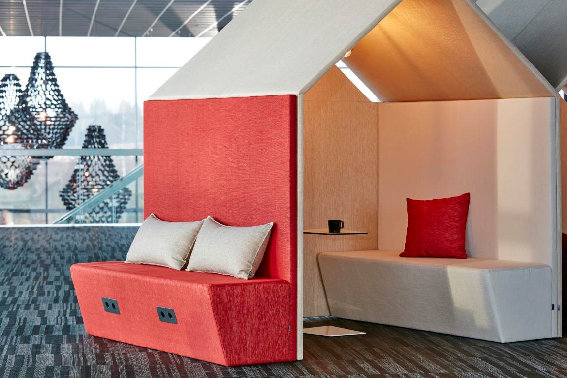 Sköna loungemöbler och sittmöbler för alla miljöer där kunden själv enkelt kan förändra och bygga nya kreativa rum. Soffor som bildar en lugn ljudabsorberande sittplats och en avgränsning i kontorslandskapet.